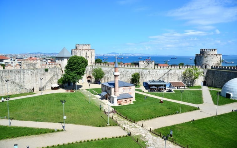 A Fortaleza de Yedikule (Sete Torres) é o ponto de partida mais fácil para iniciar uma caminhada ao longo das antigas muralhas de Istambul, que se estendem por grande parte da área cultural mais rica da cidade, a Península Histórica. Datada do século V, a estrutura foi erguida durante o Império Romano do Oriente para defender a cidade contra ataques e posteriormente ampliada com a adição de novos muros e portões durante o período otomano.