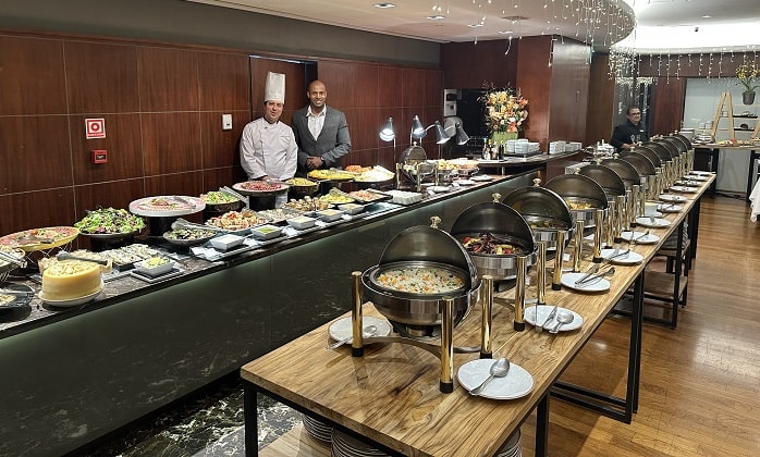 O menu reúne uma seleção de entradas e pratos que valorizam ingredientes nobres, com estações de sopas, queijos e antepastos, além de opções como king crab ao molho de tangerina, coquetel de lagosta, tataki de salmão e rolls de atum. Entre os pratos principais, destaque para osso buco de vitela, camarão flambado ao Licor 43, leitão à pururuca com farofa doce, paella valenciana e ravioli de boursin ao molho trufado.