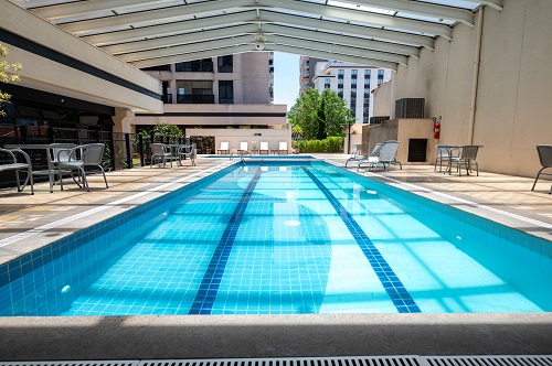 Com infraestrutura completa para hospedagem e lazer, o hotel conta com duas torres, uma com 339 apartamentos e outra com 189 suítes premium, ideais para longas estadas. As acomodações são amplas, com metragens que variam entre 28 m² e 45 m², e contam com cozinha equipada, área de trabalho, mesa para refeições e varanda. O hóspede pode aproveitar a piscina climatizada coberta, quadra poliesportiva, fitness center e um agradável jardim ao ar livre.
