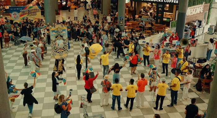 A intervenção, em formato de flashmob, levou frevo, música, dança e referências do cinema pernambucano a um dos aeroportos mais movimentados do país, transformando o saguão em um verdadeiro palco de Carnaval. A ação contou com a participação da