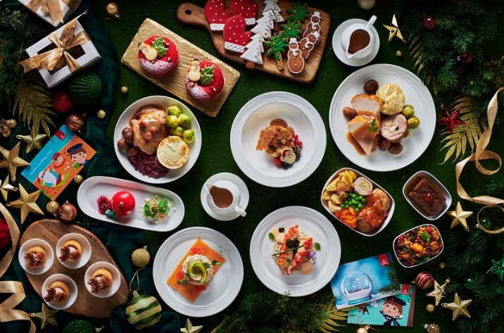 Na Primeira Classe, Executiva e Econômica Premium, a mesa de Natal é reinventada com uma culinária global, começando com pratos como gravlax de salmão marinado em beterraba e laranja, arenque em conserva com salada de batata e ovo de codorna, ou salmão defumado com maionese de caranguejo e ovas de salmão.