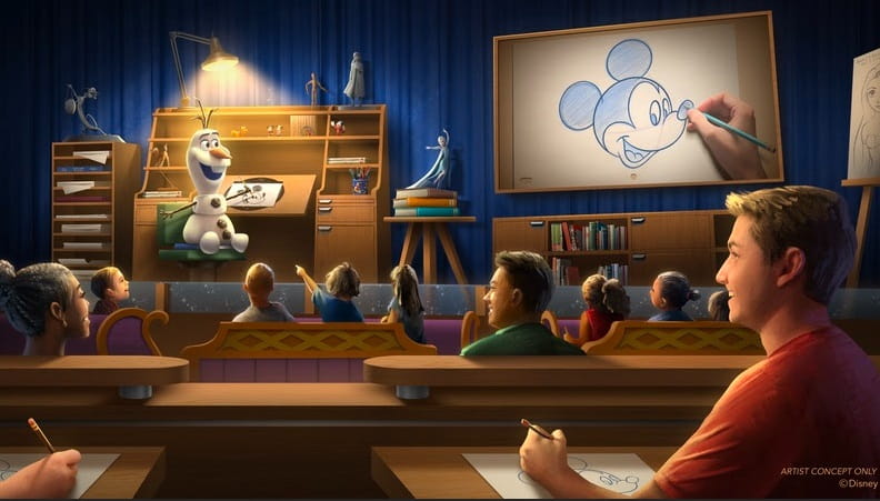 Visitantes de todas as idades serão convidados a descobrir seu artista interior em Olaf Draws!, uma experiência da Animation Academy, completamente reimaginada e apresentada por Olaf, de Frozen. Trazido à vida como uma figura áudio-animatrônica totalmente nova, o boneco de neve serve como um guia alegre e encorajador, convidando os visitantes a explorar a arte de desenhar personagens com seu otimismo e humor característico.