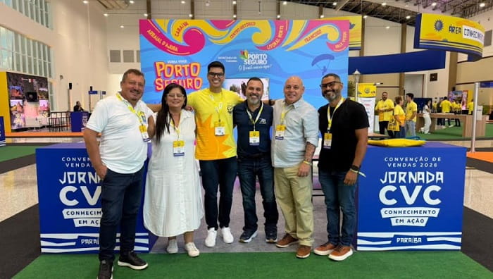 O destino Porto Seguro participou da Convenção de Vendas CVC 2026, realizada entre os dias 5 e 9 de março, em João Pessoa, reunindo cerca de 2.000 franqueados de todo o país. Considerado um dos encontros mais estratégicos do calendário comercial do turismo brasileiro, o evento promove capacitação, networking e geração de negócios entre destinos, operadoras e profissionais do setor. Representando o município, o secretário de Turismo Guto Jones participou acompanhado de equipe técnica da pasta e representantes do trade turístico. Porto Seguro esteve presente como expositor, com estande próprio para apresentar os diferenciais do destino e participar de rodadas de negócios, reuniões com parceiros estratégicos e visitas de agentes de viagens ao espaço do município.