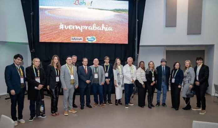 Uma equipe da Secretaria de Turismo da Bahia (Setur-BA) está em Madri, na Espanha, liderada pelo secretário Maurício Bacelar, para reforçar as ações de promoção das 13 zonas turísticas do estado no país ibérico. Na segunda-feira (19), no Hotel Riu Plaza, foi realizado o Bahia Experience, evento que ofereceu capacitação sobre os atrativos, infraestrutura e novos produtos e experiências disponíveis no território baiano. Mais de 100 operadores e agentes de viagens espanhóis participaram da iniciativa, visando comercializar novos passeios para a terra da diversidade e do axé. Eles também acompanharam apresentações de capoeira e ganharam fitinhas do Senhor do Bonfim, das mãos de uma baiana típica.
